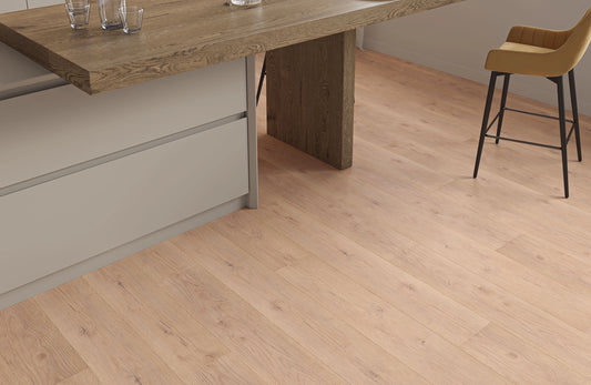 Our laminate flooring comes in various thicknesses from 8mm to 12mm. The choice depends on your preferences and budget. For a thicker, more realistic wood feel, you might opt for our 12mm laminates, while our 8mm options are more affordable and suitable for lower ceilings.