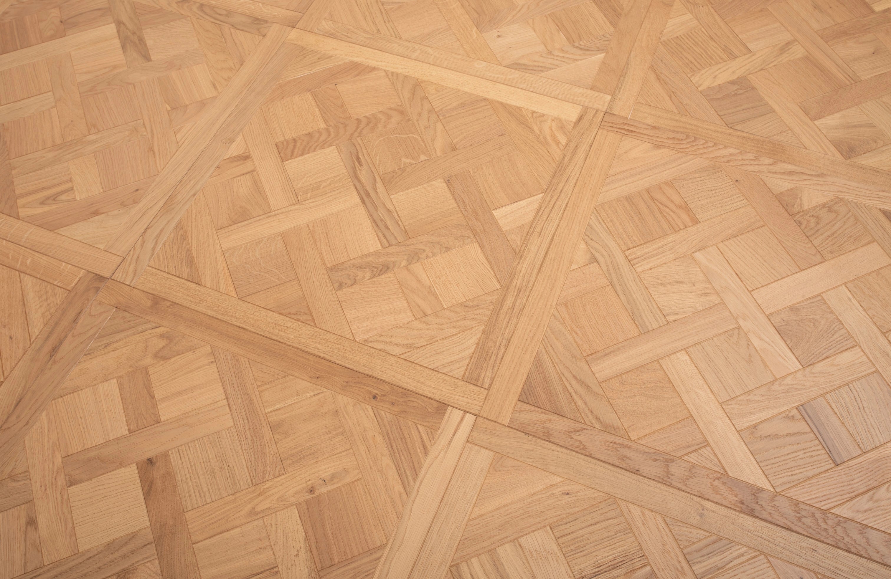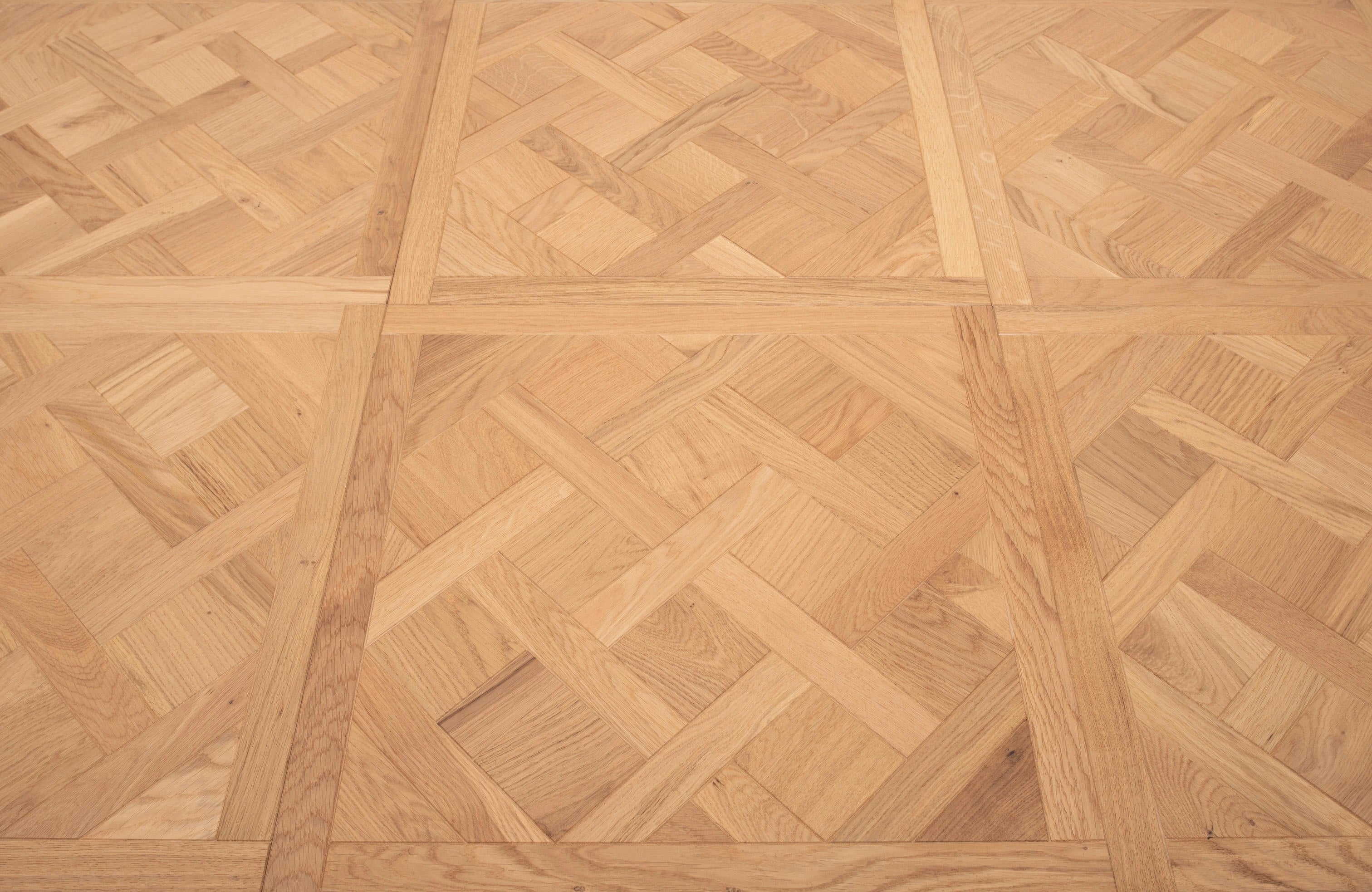 Bring timeless elegance and European sophistication to your home with Premium Manor Oak 14mm Versailles Engineered Wood Flooring. Each 600mm x 600mm panel features the iconic Versailles pattern, creating a striking, architectural floor that elevates any space. The brushed surface highlights the natural grain of the oak, while the select grade ensures a refined, consistent appearance. Finished with UV oil, this flooring offers a natural, matte look with durable protection for long-lasting beauty.